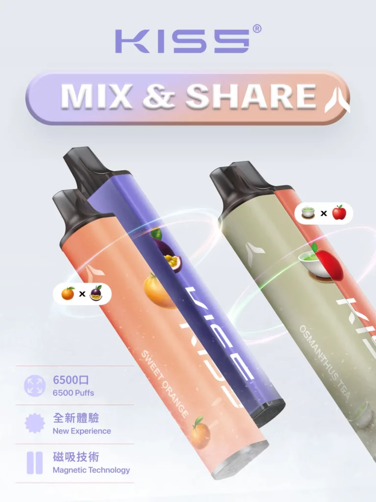 讓您可以自由組合出高達100多種口感。消費者的評價一致表示,KIS5拋棄式電子煙不僅風味出色,更帶來無限的創意空間~
